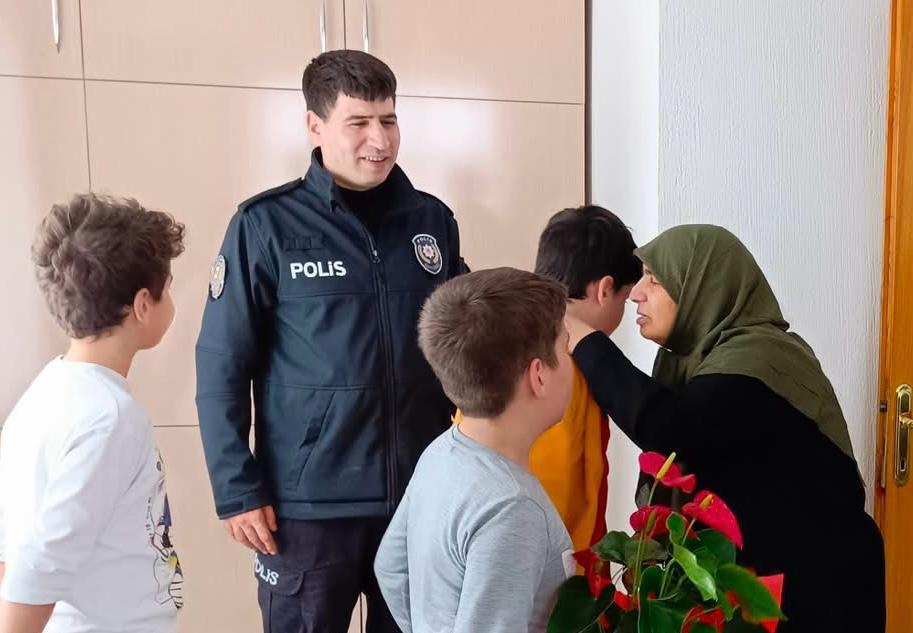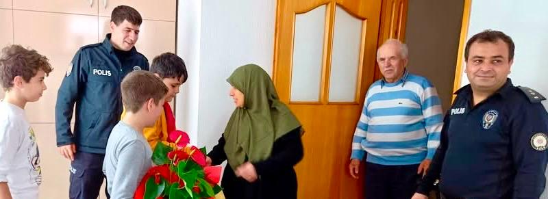 Yeni binasında eğitim-öğretime başlayan Osman Çaneri İlkokulu öğrencileri, öğretmenleri ile birlikte şehit polis ailesine ziyarette bulundu.