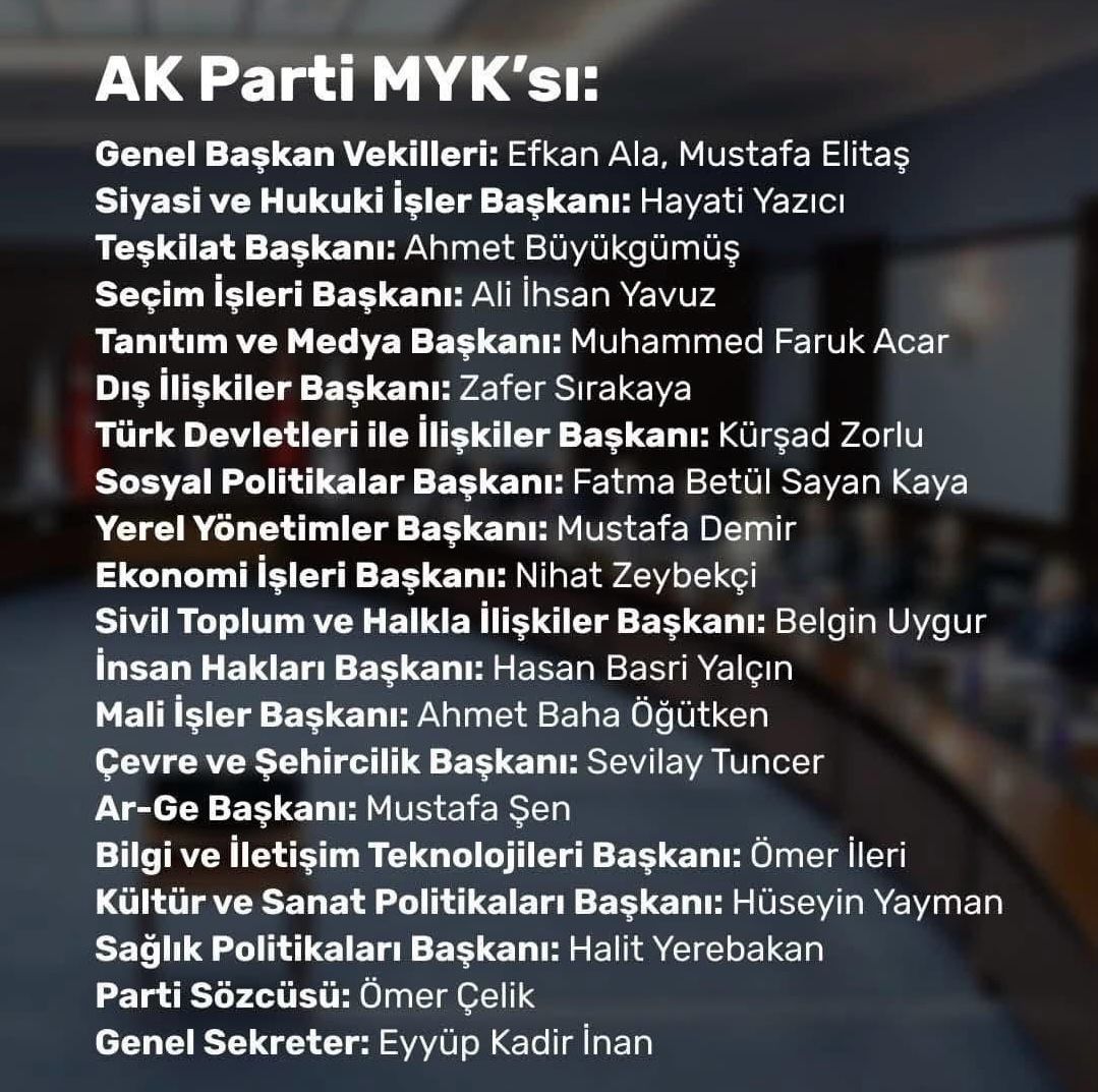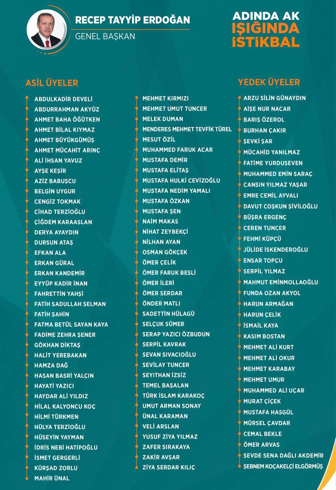 Çanakkale’den sorumlu koordinatör vekili Tekirdağ Milletvekili Gökhan Diktaş ile  Çanlı eski Ankara Milletvekili Fatih Şahin’in de yer aldığı AK Parti MKYK ve diğer organlarına seçilenlerin listesi şöyle:
