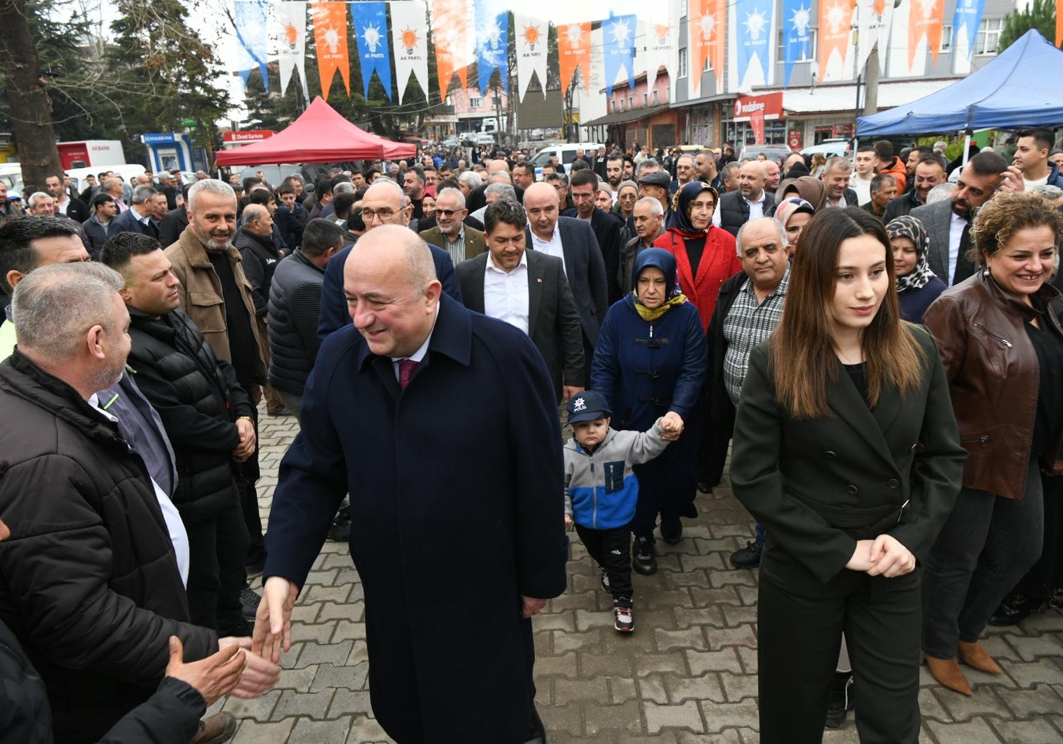 Vatandaşlara yemek ikram edilen programda ayrıca belediye meclis üyelerine AK Parti rozetleri takıldı.