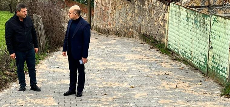 Çan Kaymakamı Dr. Emre Nebioğlu, Çanakkale İl Özel İdaresi tarafından ihalesi yapılan kilit parke taşı döşeme işinden faydalanan 24 köyden bazılarının taş döşeme işlerini yerinde inceledi.