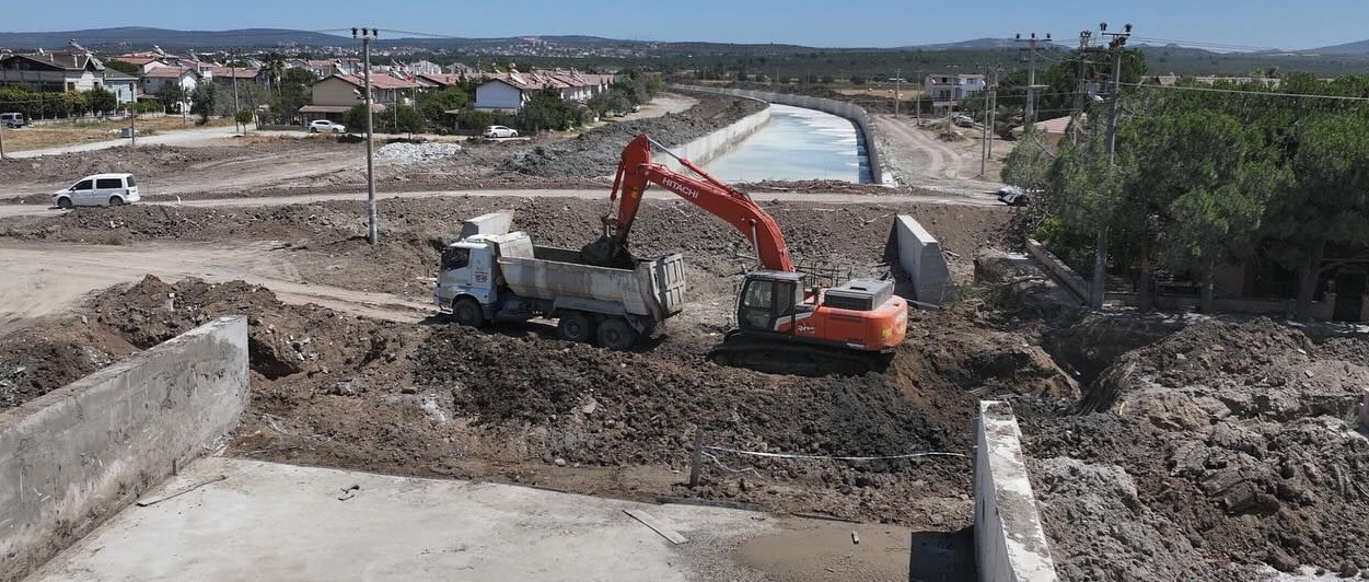 Ezine’nin Geyikli beldesinde DSİ Çanakkale 252. Şube Müdürlüğü tarafından sürdürülen “Çakal Deresi Taşkın Koruma İnşaatı” işinde çalışmalar, aralıksız devam ediyor.