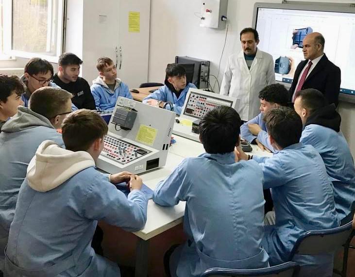 Çan Kaymakamı Dr. Emre Nebioğlu, Kaymakam Adayı Bünyamin İlkay ve İlçe Milli Eğitim Müdürü Fuat Kılıçaslan ile birlikte Çan Mesleki ve Teknik Anadolu Lisesi (MTAL) Atölyelerini ziyaret etti.