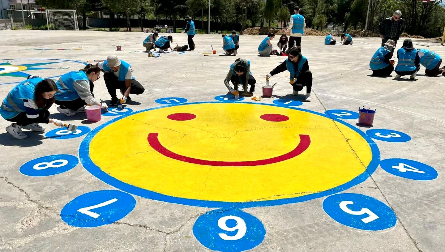 İnşaat ve yapım süresi tamamlanarak 2024-2025 Eğitim-Öğretim yılının ikinci yarısında yeniden hizmete giren Çan Osman Çaneri İlkokulu ile Ortaokulu’nun bahçesi boyanarak renklendirildi.