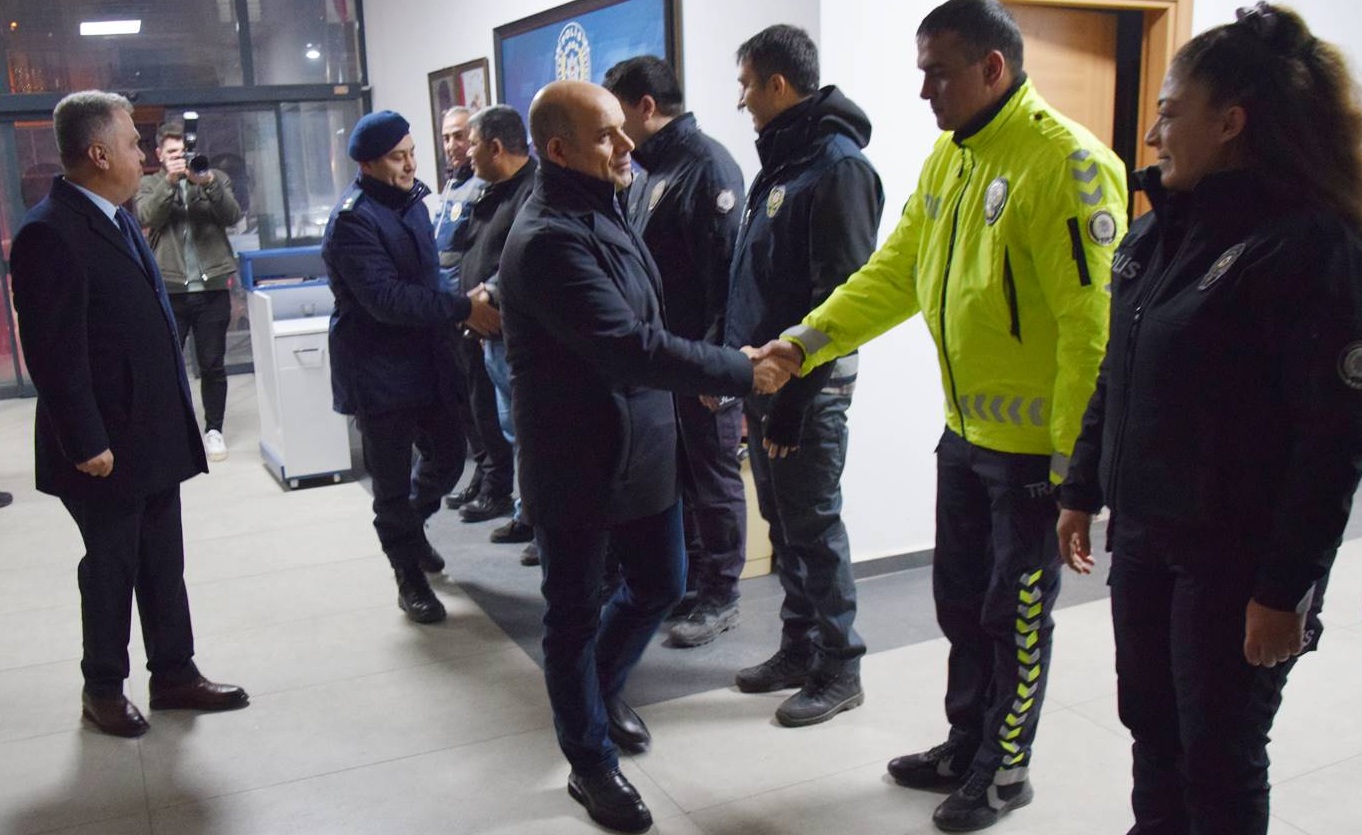 Çan Kaymakamı Dr. Emre Nebioğlu, yılbaşı gecesi nöbet tutarak can ve mal güvenliğimizi sağlayıp fedakarca görev yapan itfaiye ve ağlık personelleri ile güvenlik güçlerini ziyaret ederek yeni yılın sağlık, mutluluk ve huzur getirmesini temenni etti.
