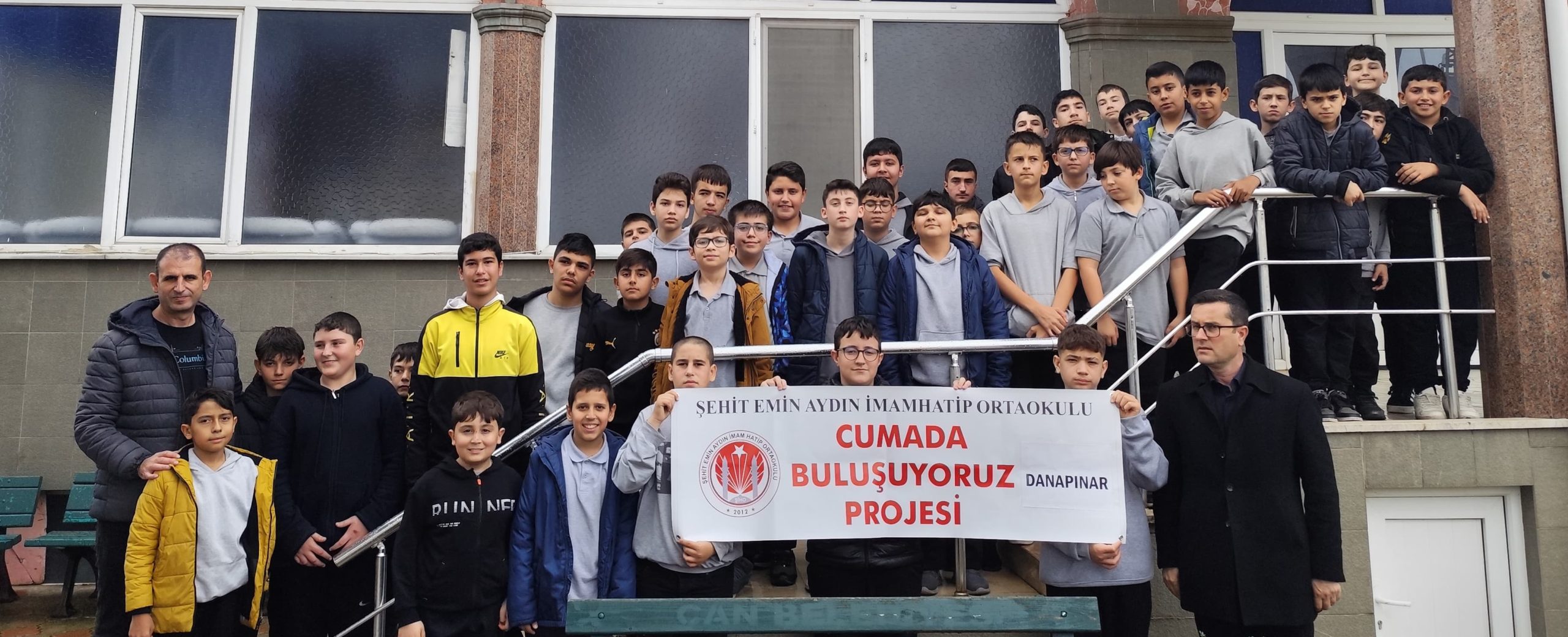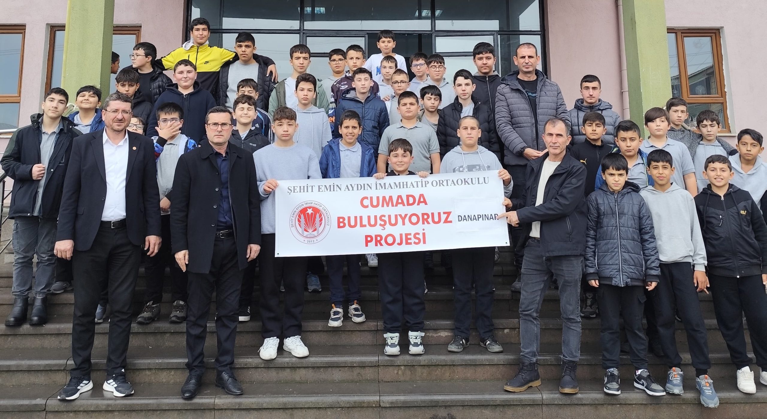 Çan Şehit Emin Aydın İmam Hatip Ortaokulu öğrencileri, her hafta bir okulda tatbikat yapıyor. Geçen hafta da, “Cumada Buluşuyoruz Projesi” kapsamında Danapınar köyünde tatbikat yapan öğrenciler, okul velisi de olan Danapınar Köyü Muhtarı Abdullah Yıldız’ın davetine icabet ederek, Cuma Namazında görev aldı.