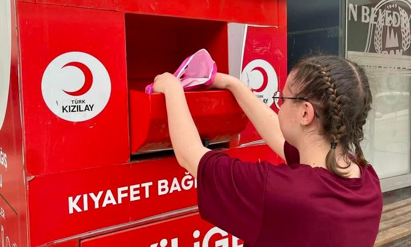 Çan Sevim Bodur Meslek ve Teknik Anadolu Lisesi (MTAL) öğrencileri, giymedikleri kıyafetleri Kızılay kıyafet kutusuna atarak bağışladı.