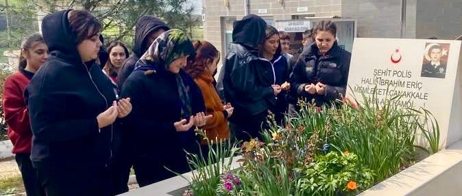 Çan’ın başarılım okullarından biri olan Çan Sevim Bodur Mesleki ve Teknik Anadolu Lisesi (MTAL) öğrencileri, Çanakkale Zaferi ve Şehitleri Anma Haftası etkinlikleri kapsamında, Çan Şehir Mezarlığı’ndaki şehit asker, polis ve öğretmenlerin kabirlerini ziyaret ederek dualar okudu.