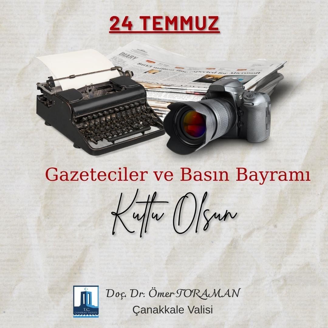 Çanakkale Valisi Doç. Dr. Ömer Toraman, 24 Temmuz Basın Bayramı nedeniyle kutlama mesajı yayımladı.