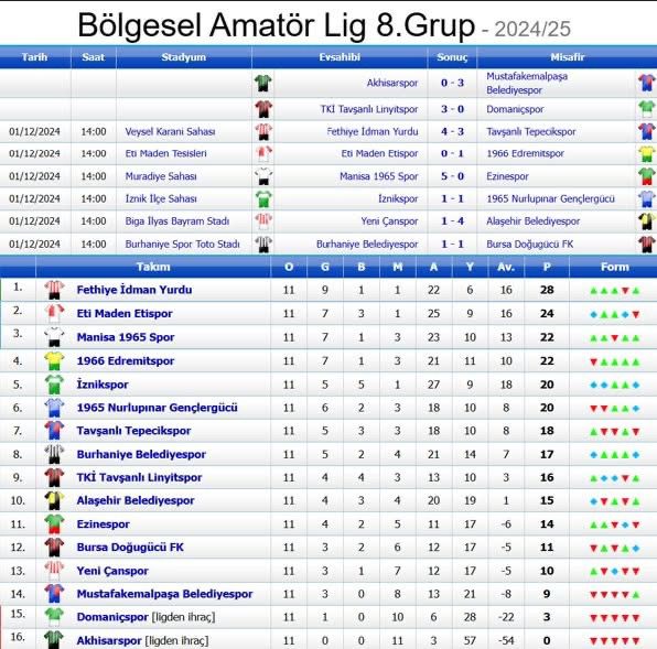 Hafta arasında kendi sahasında ikinci sıradaki Eti Maden Etispor ile golsüz berabere kalan Ezinespor ise ligden ihraç edilen Akhisarspor ile karşılaşacağı için haftayı maç yapmadan geçirecek.