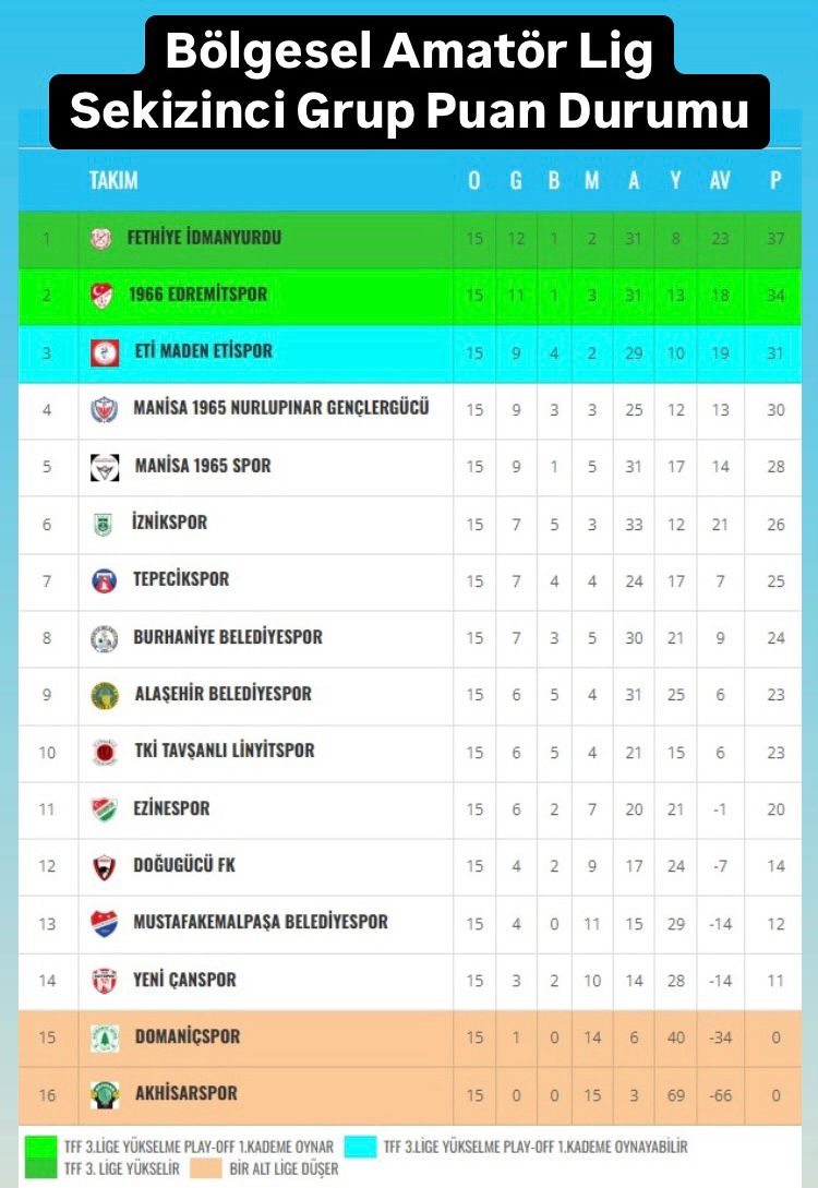 Ezinespor, ilk yarıyı 20 puanla 11’inci sırada kapatırken; Yeni Çanspor ise ihraç edilen Akhisar ve Domaniç’in hemen üstünde 11 puanla 14’üncü sırada yer aldı.