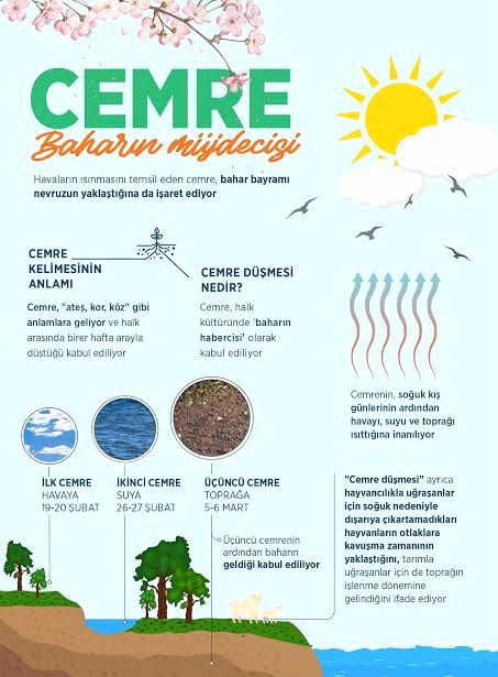 Bilir misiniz eskiden Divan şairleri, cemre zamanlarında baharın gelmesi dolayısıyla, önemli kişilere yazdıkları övgü şiirleri de Cemreviye derlermiş. Bunun öncesinde kışın anlatıldığı Şitâiye, karın anlatıldığı berfiye, cemreden sonra da baharîye, rebîiye, temmuziye gibi kasideler yazılırmış.