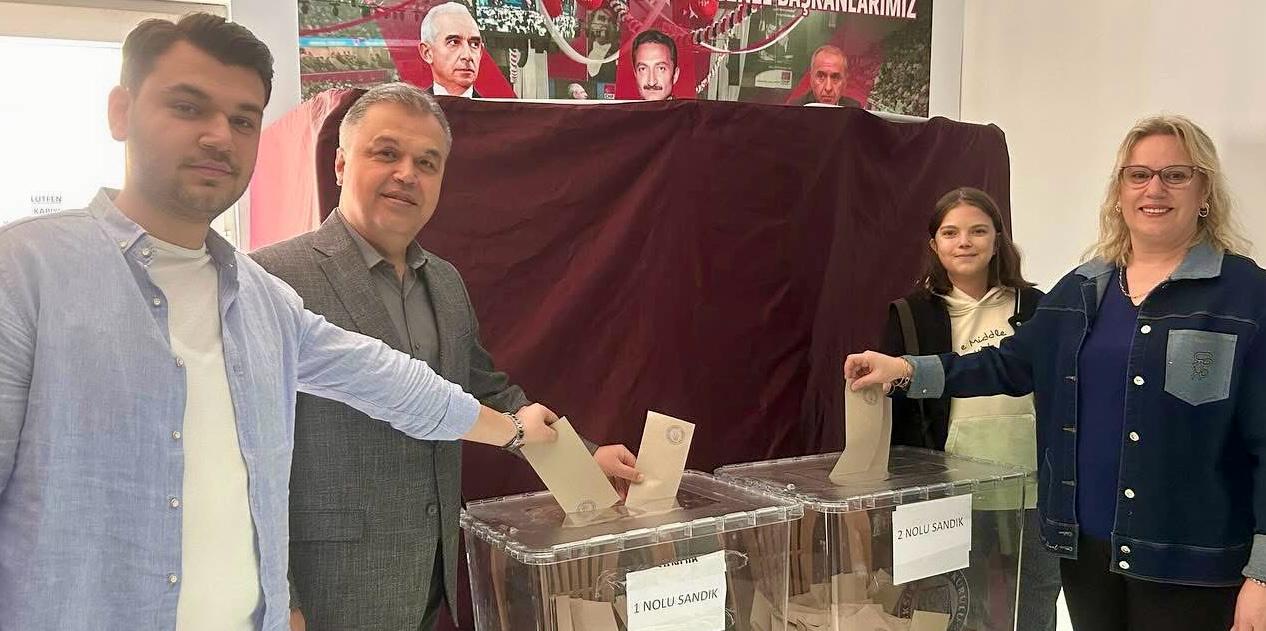 (Çan Belediye Başkanı Harun Arslan da ön seçimde eşi-oğlu ve kızıyla birlikte oy kullandı)