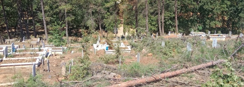 Danapınar Köyü’nde mezarlık alanında çevre düzenleme çalışmaları başladı. Köy muhtarlığı tarafından alınan karar doğrultusunda, 1974-1975 yıllarında fidan olarak dikilen çam ağaçlarının kesimine başlandı.
