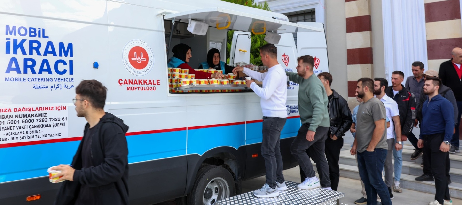 Türkiye Diyanet Vakfı Çanakkale Şubesi Mobil İkram Aracı, 18 Mart Hatime Ana Ulu Camii’nde Cuma Namazı sonrası hizmete başladı.