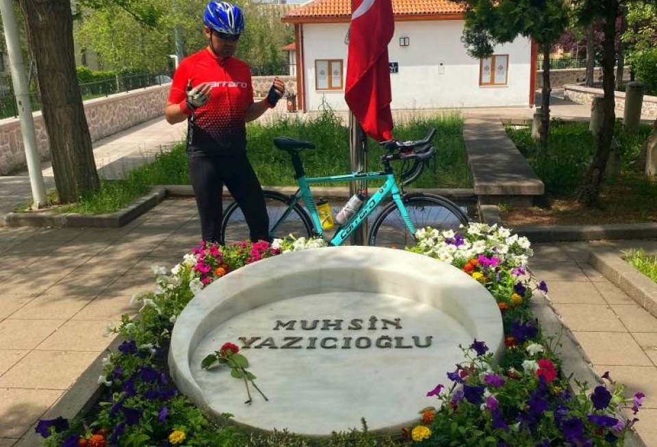 Yolculuğunu sosyal medya hesapları üzerinden paylaşan Tecimen “Gazi Mustafa Kemal Atatürk’ün gazilik ünvanı aldığı ve büyük destansı adını tarihe altın harflerle yazdırdığı Çanakkale’den, Türkiye Cumhuriyeti’nin kurucusu Mustafa Kemal Atatürk’ün ebedi istirahatgahı olan Ankara’da yer alan Anıtkabir’e gelip, Atamıza saygımı ve şükranlarımı sunup; 19 Mayıs Milli Mücadele Rotası Atamıza ve Tüm Şehitlerimiz için 2000 km vefa saygı bisiklet sürüşüne, İl il, şehitlik şehitlik, tarih tarih pedallamaya devam ediyorum. Demir atımı efsane lider, ömrünü Türk-İslam davasına adamış rahmetli Muhsin Yazıcıoğlu’nun kabrine pedalladım. Şehitler diyarı Çanakkale’mizden hayır dualar getirdim. Nizam-ı Âlem Davası’nı yayabilmek, bu uğurda Cenab-ı Allah’ın rızasını kazanabilmek için, çile ve işkenceyle geçen gençliğini ve milleti için harcanmış tertemiz ömrünü, şehadetiyle de tescillemiş, aşkı sadece vatan olan lider Muhsin Yazıcıoğlu’nu mezarı başında rahmetle ve minnetle anıyorum. Ve bir kez daha anladım ki Ölürse ten ölür Canlar ölesi değil. Ruhun şad olsun, mekânın cennet-i âlâ olsun İnşallah” ifadelerine yer verdi.