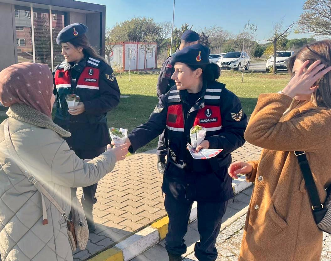 Konuyla ilgili olarak İl Jandarma Komutanlığı tarafından yapılan açıklamada; “Temel bir insan hakkı ihlali olan kadına yönelik şiddetin ortadan kaldırılması için şiddete karşı sıfır tolerans ilkesi çerçevesinde yasal uygulamalarda birlikteliğin sağlanması amacıyla Çanakkale İl Jandarma Komutanlığı Aile İçi Şiddetle Mücadele ve Çocuk Kısım Amirliği tarafından; Kadına Yönelik Şiddete Karşı Uluslararası Mücadele Kapsamında, çeşitli işyerlerinde ve Biga İktisadi ve İdari Bilimler Fakültesinde stant açılarak toplam (220) kadına tedbir kararlarından nasıl yararlanabilecekleri ve nerelere başvuru yapabilecekleri konusunda bilgilendirme faaliyeti yapılmıştır. Kadın Destek Uygulaması (KADES) tanıtılarak broşür dağıtılmış, karanfil hediye edilmiştir” denildi.