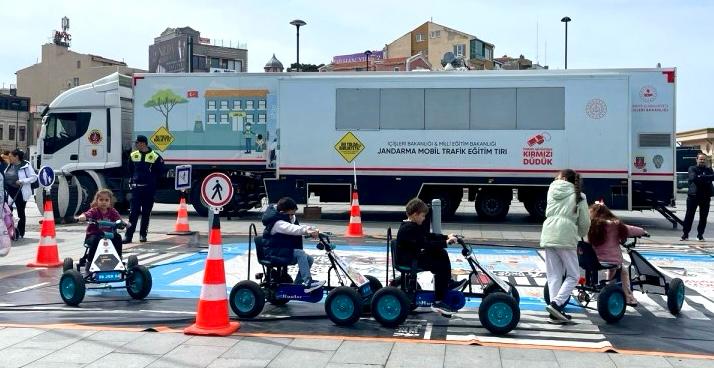 Trafik güvenliği konusunda farkındalık oluşturmak, trafik kuralları hakkında teorik ve uygulamalı eğitimler vermek amacıyla halkın hizmetine sunulan Jandarma Genel Komutanlığı Mobil Trafik Eğitim TIR’ı ve Emniyet Kemeri Simülasyon Aracı, Çanakkale İskele Meydanı’nda ziyarete açıldı.