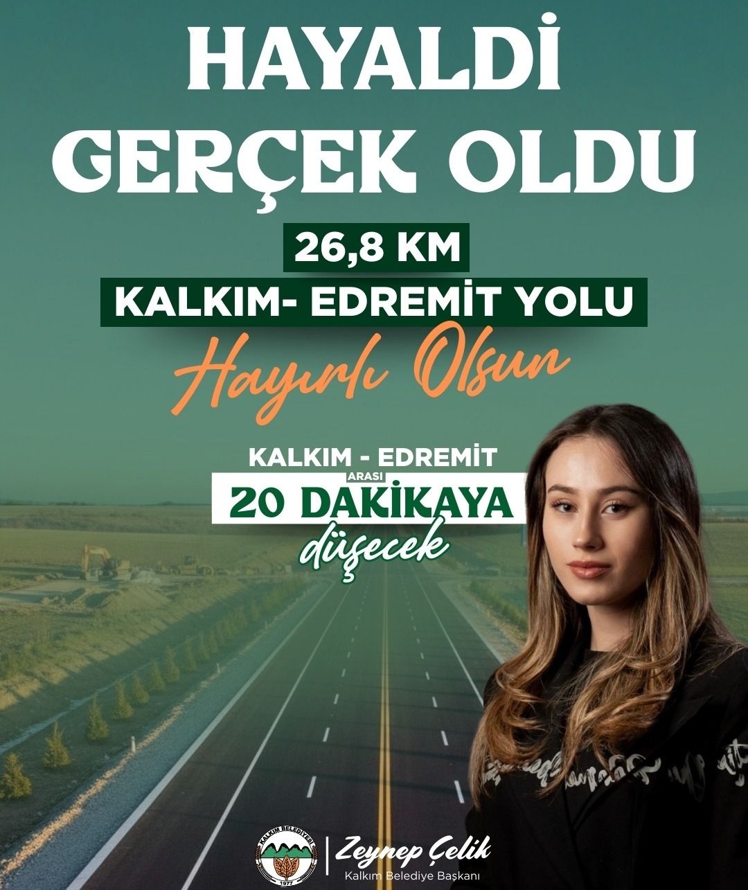 Türkiye’nin en genç belediye başkanı olan AK Partili Kalkım Belediye Başkanı Zeynep Çelik, “Kalkım için kurduğumuz hayalleri ardı ardına hayata geçiriyoruz” diyerek, Kalkım-Edremit Yolu Projesinde en kritik aşamanın geride bırakılarak projenin ihale sürecinin gerçekleştirildiğini açıkladı.