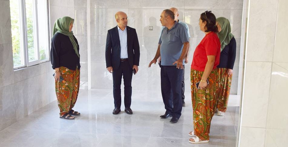 Ahlatlıburun Köyü köy mezarlığının dış duvar ve çevre düzenlemesi inceleyen Çan Kaymakamı Dr. Emre Nebioğlu, Kızılelma Köyü S.S. Tarımsal Kalkınma Kooperatifinde görev alan kadınlar ve Köy Muhtarı ile bir süre sohbet ederek, köylü kadınların ürettiği ürünleri ve kooperatifte yapılan tadilatı yerinde inceledi.