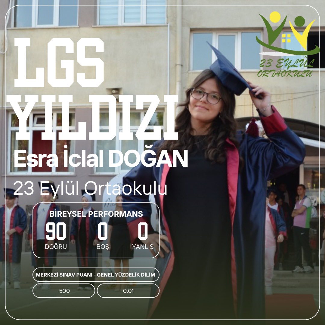 Çan 23 Eylül Ortaokulu’nun sosyal medya hesabında yapılan açıklamada da, “Okulumuz öğrencilerinden LGS Başarısı. Esra İclal Doğan 500 tam puan alarak Türkiye birincisi olur iken Deniz Yılmaz bir yanlış ve 493.8037 puan ile Çan ikincisi olarak bizleri gururlandırdı. Emek sahibi başta öğrencilerimizi, ailelerini ve öğretmenlerimizi kutluyoruz” denildi.