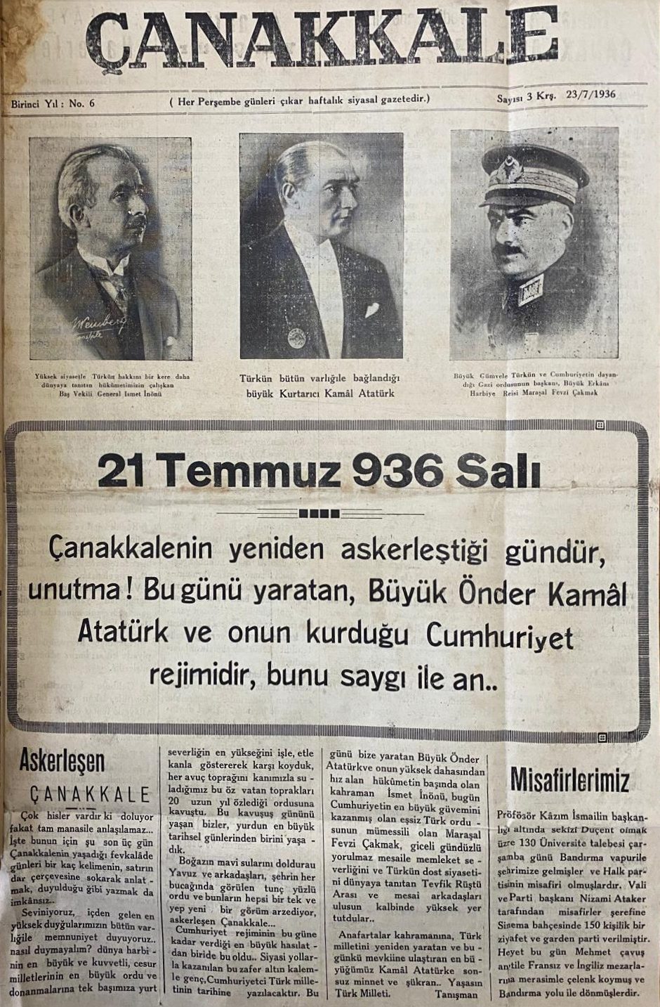 Türkiye’ye İstanbul Boğazı, Çanakkale Boğazı ve Marmara Denizi üzerinde kontrol ve savaş gemilerinin geçişini düzenleme hakkı veren Montrö Boğazlar Sözleşmesi imzalandıktan birkaç gün sonra yayınlanan Çanakkale gazetesinin ilk sayfası, Çanakkale’de yaşanan heyecanı çok güzel yansıtıyor.