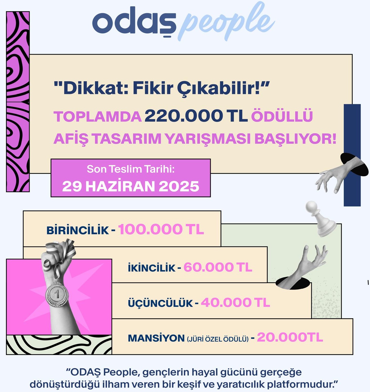 ODAŞ, gençlerin fikirlerini özgürce ifade edebilecekleri, yaratıcı projelerle toplumsal farkındalık yaratabilecekleri yepyeni bir dijital platformkurdu: odaspeople.com. Üniversite öğrencilerine yönelik yarışmalar, tasarım projeleri ve fikir üretimi süreçlerine ev sahipliği yapacak bu platform, gençlerle daha samimi, üretken ve sürdürülebilir bir iletişim kurma hedefiyle hayata geçirildi. Platformun ilk adımı ise, İş Sağlığı ve Güvenliği (İSG) temalı “Dikkat: Fikir Çıkabilir! Afiş Tasarım Yarışması” oldu.