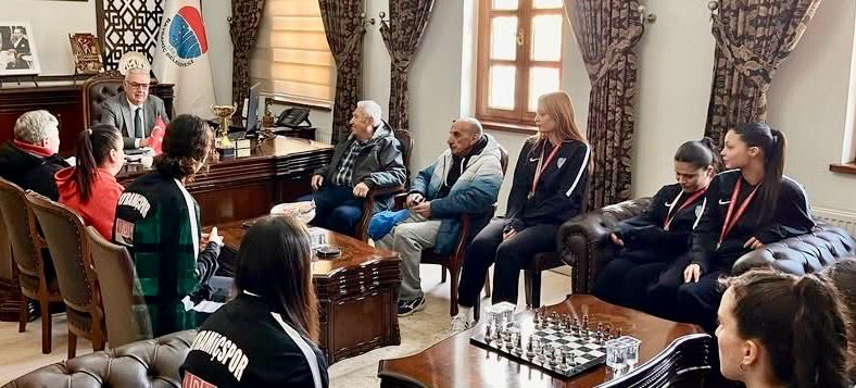 Kulüp Başkanı Bülent Bora, Şube Sorumlusu Sami Özar, antrenörleri Mehmet Güneş ve Melda Bora ile bizleri gururlandıran Yeşil Bayramiçspor takımı kızları, Bayramiç Belediye Başkanı Hasan Cem Atılgan ile uzun süre görüştü.